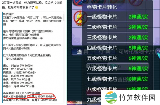 夜战卡可以说是每个物理系日常任务都必备的卡片,目前副本产出的夜战卡不多,夜战卡也从最初的3w梦幻一路涨至5-6w梦幻币。不过新资料片的七十二变玩法就很好地解决了这个问题,玩家可以用体力兑换神通进行变身,获取对应变身卡的效果,而夜战卡在新变身系统里每小时成本只要2w,可以说非常实惠了。