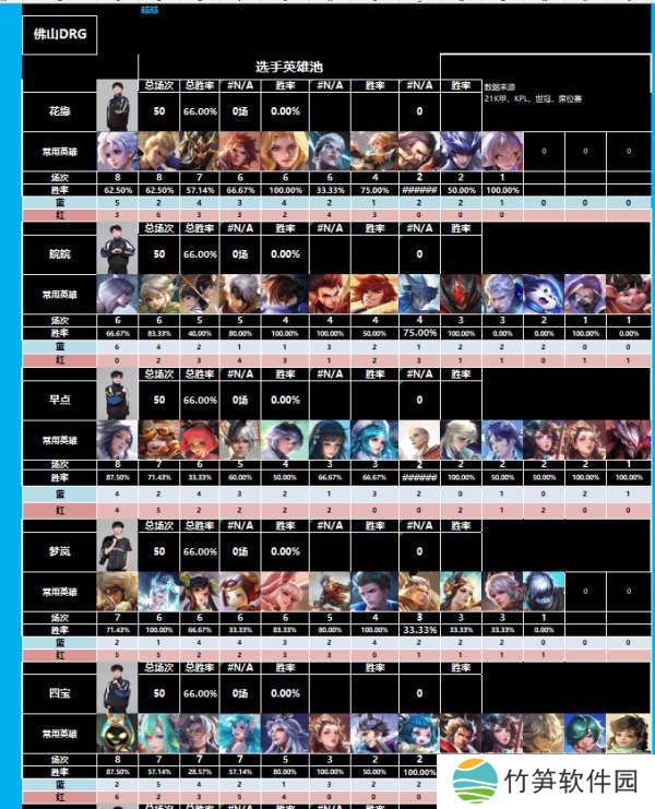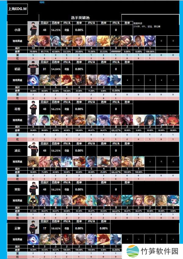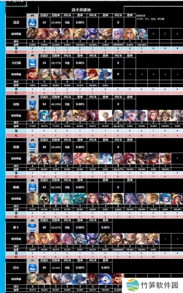 虎扑04月08日讯 越越发布S/A组战队选手英雄数据:有需要自取了