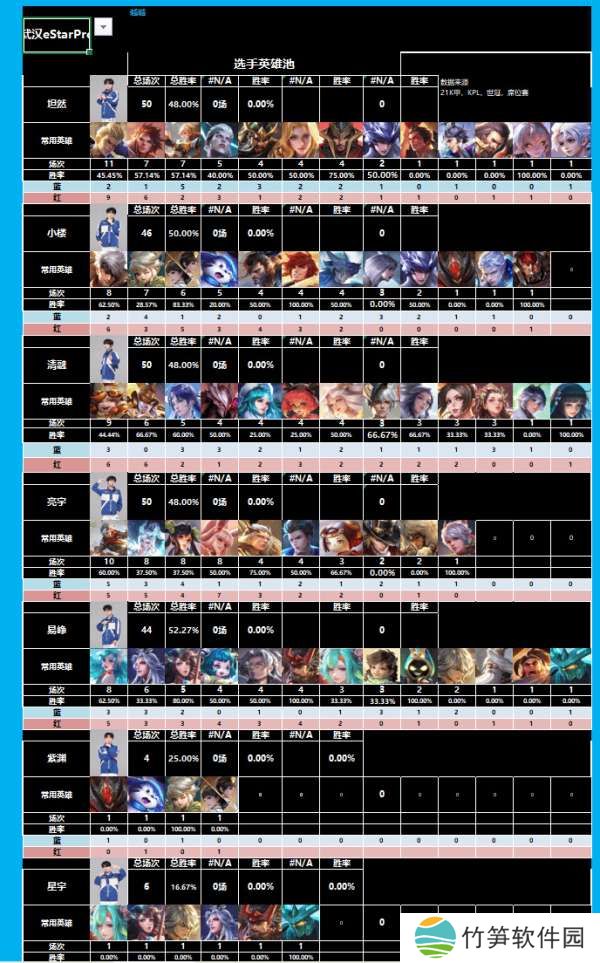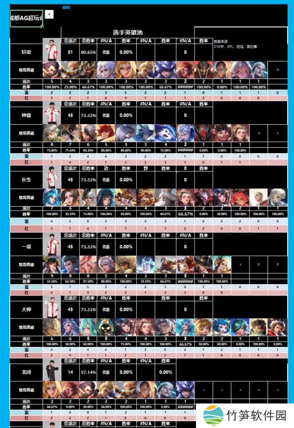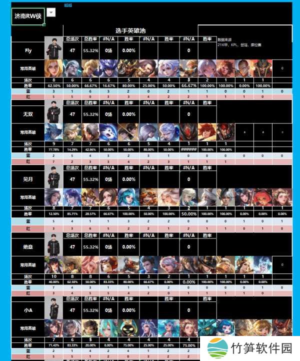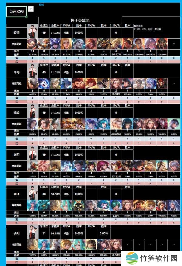 2025KPL春季赛截止到春季赛第三阶段第一周 SA组战队选手的英雄数据,有需要自取了