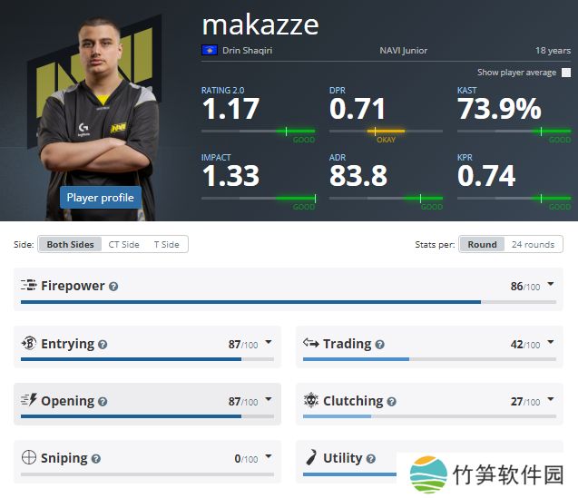 NAVI Junior,2025年随NAVI青训队在二线赛场历练,平均rating为1.17、ADR 83.8。他是今年NAVI青训队中发挥最好的选手。