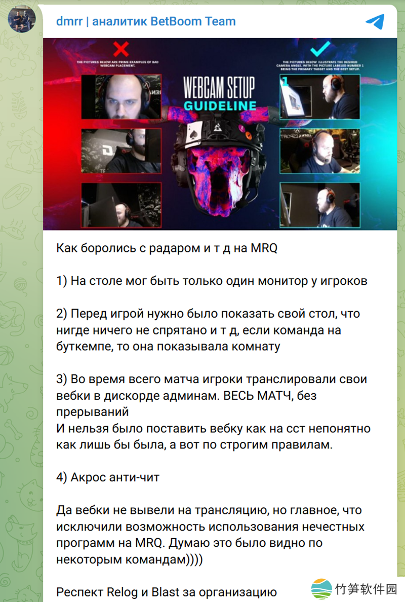 (在这些要求中)包括使用Akros反作弊系统。没错,(虽然)不需要直播网络摄像头画面。但关键是他们排除了在MRQ中使用作弊程序的可能性。我觉得这在某些战队身上体现得很明显。为Relog和BLAST的赛事组织工作点赞。”