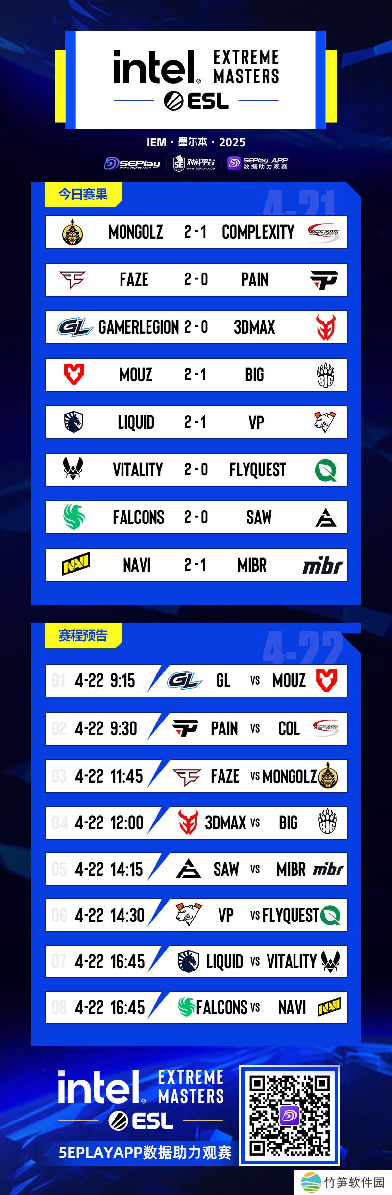 IEM墨尔本 2025首日比赛已经结束,首日比赛为八个BO3,其中The MongolZ、FaZe、GamerLegion、MOUZ、Liquid、Vitality、Natus Vincere和Falcons均取得了胜利。在明日比赛中,FaZe将迎战蒙古队,Liquid挑战小蜜蜂,m0NESY加盟的Falcons将会与NAVI一决胜负。
