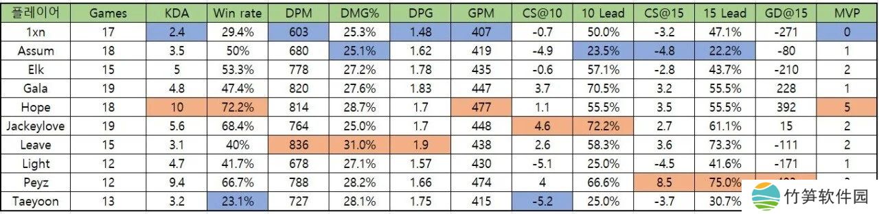 直播吧4月22日讯 LPL第二赛段组内赛的赛程即将过半,近日有韩国网友整理了LPL三路选手的整体数据,其中上单位置Cube与Hoya多项数据垫底。
