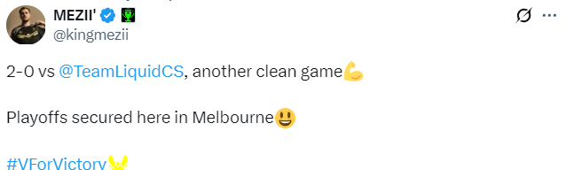 mezii:以2-0战胜Liquid,又是一场干净利落的比赛。在IEM墨尔本成功晋级淘汰赛。