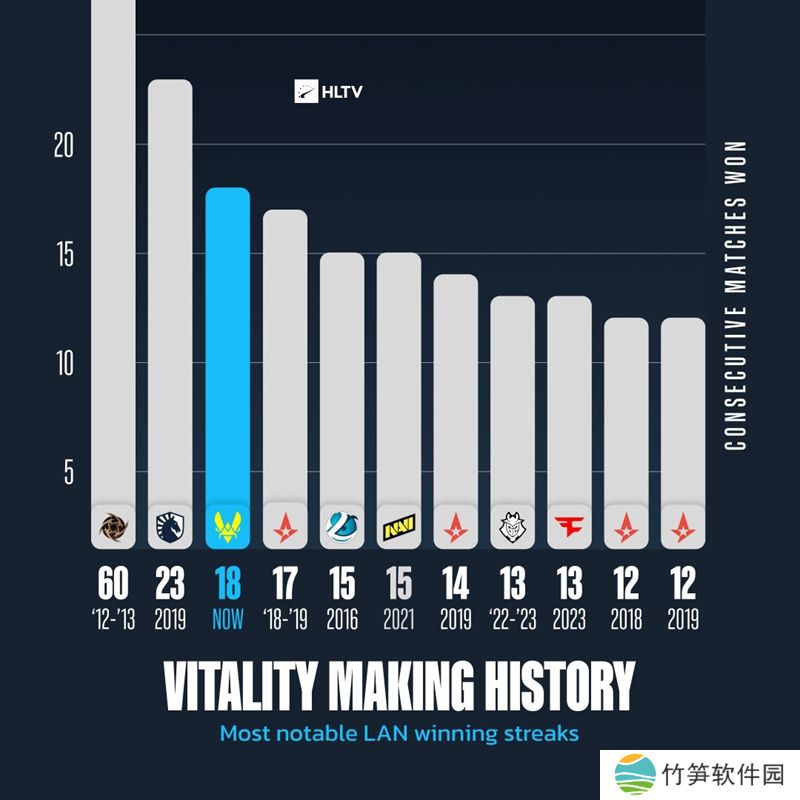 Astralis在2018-2019年创造的线下连胜记录。Vitality官方也发布动态庆祝了这一成就的达成。