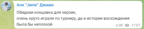 Jame:“HEROIC的最终结局令人遗憾。他们整场比赛打得都非常酷,是的,如果能诞生一个登峰造极的故事就更好了。”