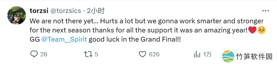 torzsi:我们还没有足够强大....虽然很痛苦,但我们下个赛季会更加努力,更加强大。感谢大家的支持,这是很精彩的一年!