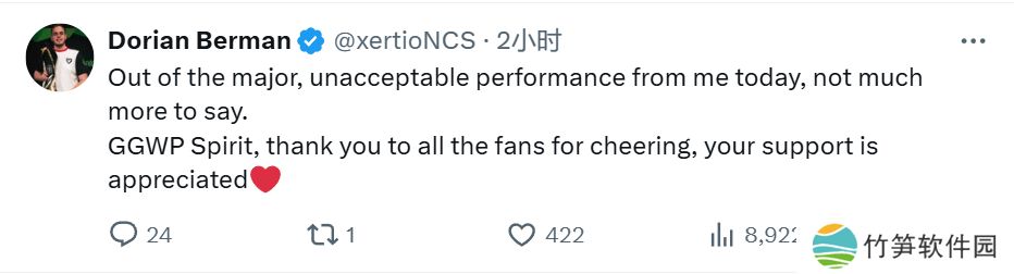 Brollan:令人心碎,从Major出局了,GG Spirit,谢谢大家的支持。