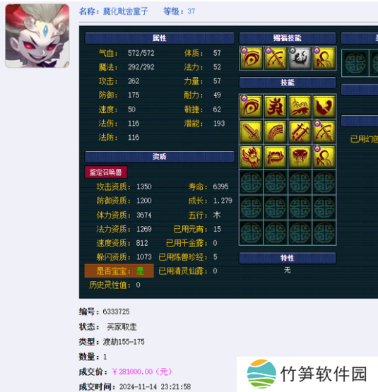 12JN诸天林中魔童以28万成交了, 这没高驱、感知、敏捷,怎么能卖这么贵啊?这要捉多少只鬼才能回本呢。