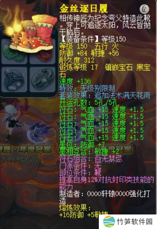 基础防御100,基础敏捷61,镶嵌17锻黑宝石的无级别鞋子。