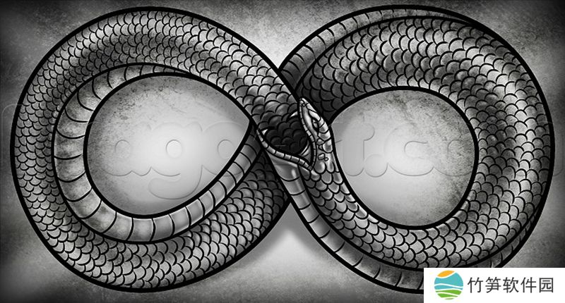 衔尾蛇是古埃及和希腊的象征性蛇,嘴里叼着尾巴,不断吞噬自己并从自己身上重生。