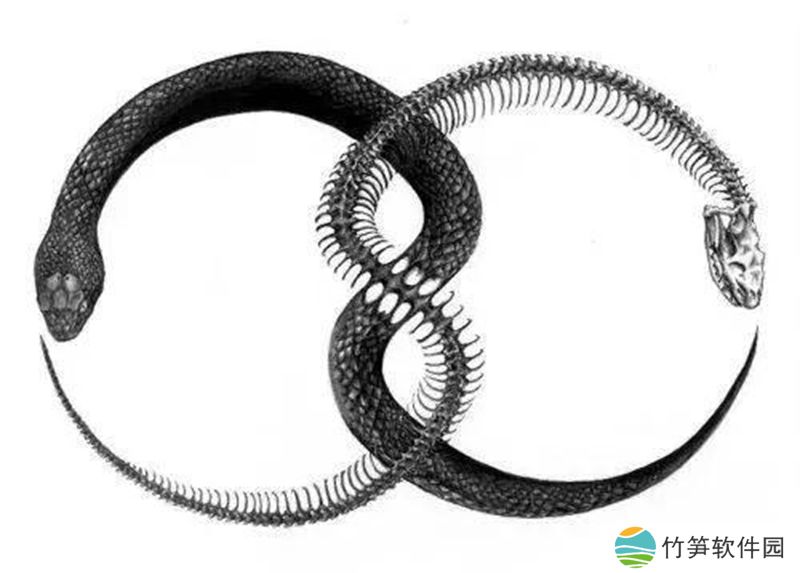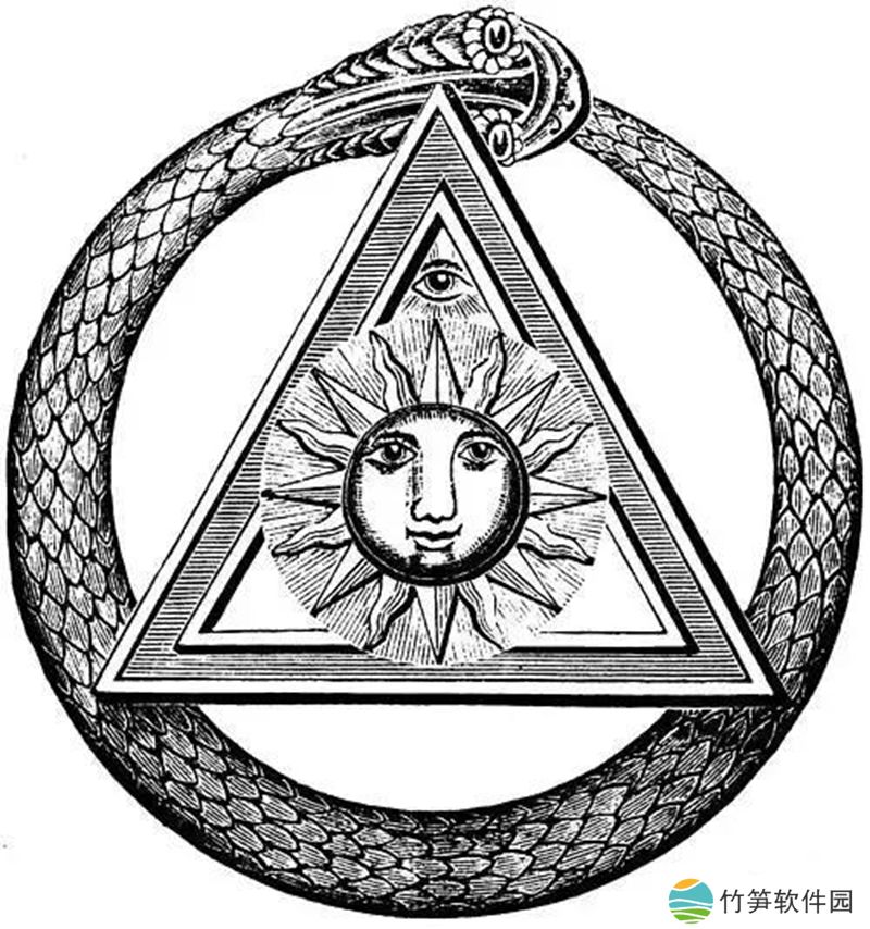 衔尾蛇是一种诺斯底主义和炼金术的符号,表达了所有事物的统一性,无论是物质的还是精神的,它永远不会消失,而是在毁灭和再创造的永恒循环中不断改变形式。