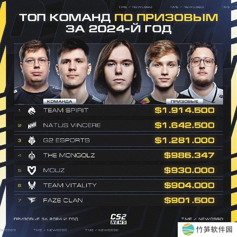 2024年战队收获奖金排行榜如下: