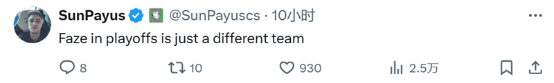 SunPayus:淘汰赛的FaZe是支截然不同的队伍。