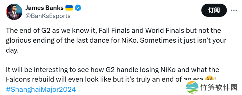 Banks:如我们所知这就是G2的结束。虽然是秋季决赛和世界总决赛冠军,但对于NiKo来说他的最后一舞并不光彩。有时候确实天意弄人。
