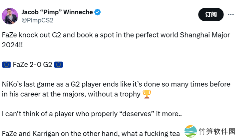 在昨晚的上海Major半决赛中,G2不敌FaZe告别Major赛场。这场比赛的看点满满,NiKo的Major之路、FaZe的救赎等等都让人对这场BO3热血沸腾。而在这场半决赛结束之后,社区人士也分享了自己的感受。