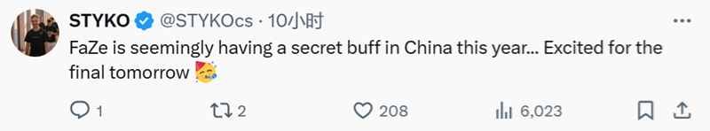 STYKO:FaZe今年似乎在中国有秘密buff……期待明天的决赛。