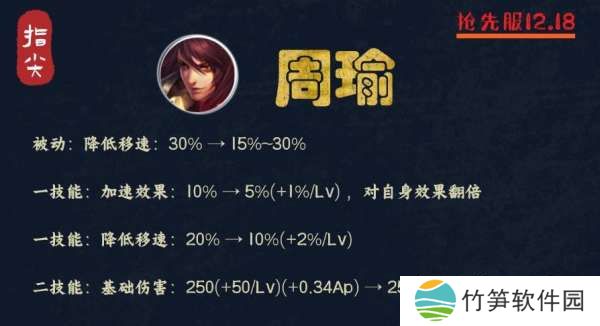 周瑜的这波调整其实也是类似的方向,首先,被动的减速不用管,所有英雄都削了,周瑜只是其中之一罢了。