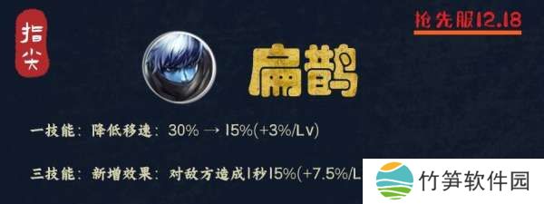 重点在于加速效果,1技能使用后对范围内队友进行加速10%,调整后变成了5%-10%,但新增了一个机制,那就是对自身翻倍。