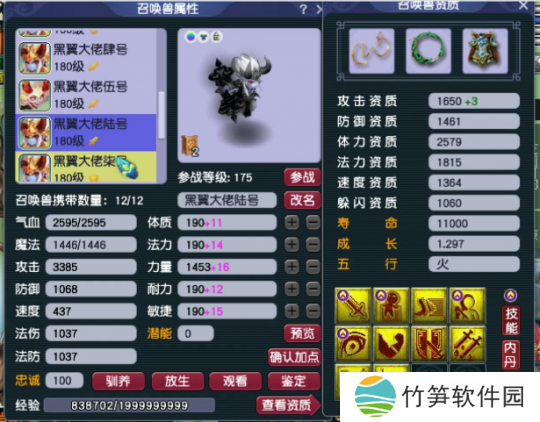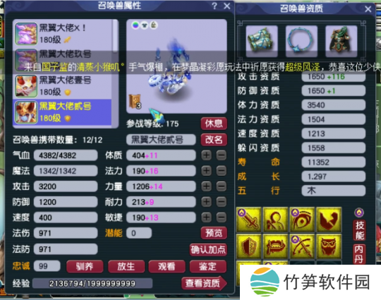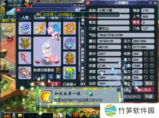 改装备套装后,满符气血10785,伤害3882,防御2130,法防1568。