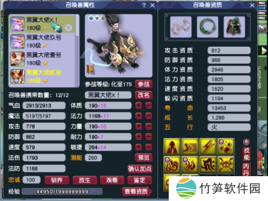 无符面板属性,气血9933,伤害3464,防御1951,速度866。