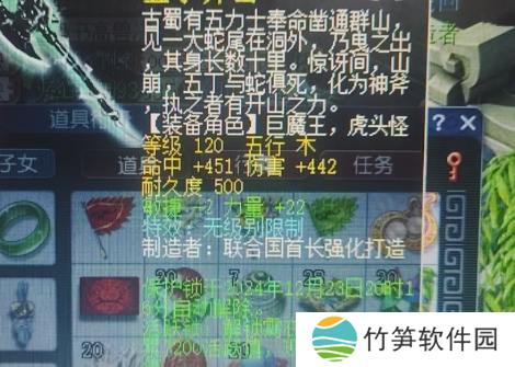 一名玩家日常鉴定武器,意外拿到无级别。这是命中451、伤害442的120无级别斧头,伤害爆了不少还加22力,卖个万把块美滋滋。