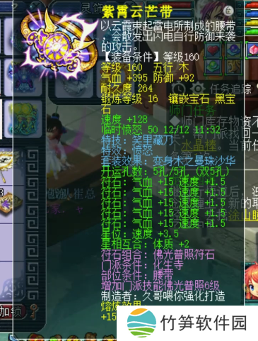 160级愤怒笑里藏刀腰带,16锻黑宝石,熔炼后防御+107,气血+425。化生寺主要看腰带,腰带双蓝字特技特效就是顶配!