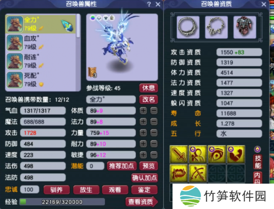 综上所述,这位玩家不仅拥有两把适应不同场合的无级别武器,其宝宝阵容也极为强,输出玩家就需要配备多只卡速,可以开封印卡药等,带净台辅助宠在pk中可以更灵活操作。