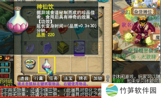 神仙饮无法延长“变化之卷”“神变”或“形变”造型的变身时长哦。