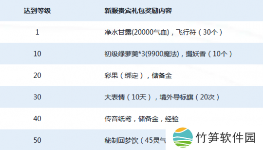 在办理了“新服绿色通道”服务之后,每提升相应的等级即可获得新服贵宾礼包的奖励内容,每提升十级就可以获得相应的奖励,让各位少侠在新服开荒更加便利。