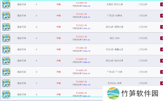 嘉年华活动开启当天,最备受关注就是新神兽超级风泽了,笔者一搜竟然挂了9只超级风泽。因为刚出的时候,首只超级风泽就被老板19999元买走了,不少人那时都觉得这个神兽的价值是超过飞廉的。
