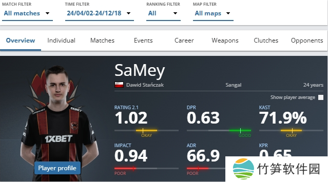 Anonymo阵容加入Sangal,在效力期间的192张地图中平均rating为1.02,但他在线下赛事的表现明显下滑(27张地图平均rating为0.88),尤其是在对阵世界前20的队伍时表现尤为低迷(13张地图平均rating为0.81)。