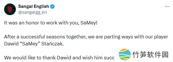 Sangal宣布了SaMey的离队,结束了这位波兰狙击手与队伍长达七个月的合作。
