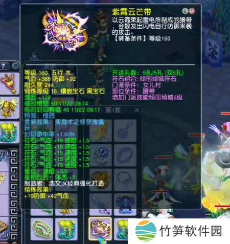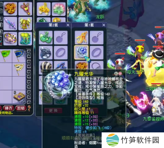 前排是140六速度。戒指主属性防御32爆4,下排速度共37爆7。耳饰主属性法防30爆2,下排速度共38爆8。