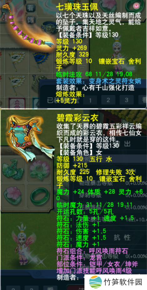 5、如果装备有孔,别浪费,镶嵌符石吧。考虑到勤俭持家,咱可以全部镶嵌2级绿色+1.5速度或1.5灵力的符石,性价比非常高。