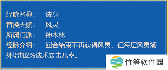 如果少侠们觉得调整配速麻烦,或者自己的队伍不固定,也可以考虑用这套配装来玩神木。神木的“法身”经脉可以提供6%的法术暴击几率,配合面板高达16%以上,真得“非常能爆”!