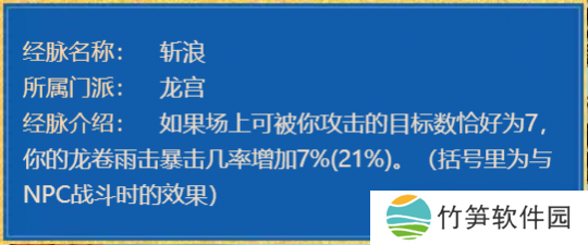 在任务腰带83点法伤的加持下,咱将任务经脉由“海中蛟虬”切换成“沧海潜龙”。利用“沧海潜龙”的80点法术暴击等级,就可以达到2300法术伤害和4.57%的法术暴击几率的任务面板啦。