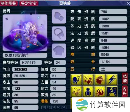 笔者看到一只13技能全红画魂,带着善恶+法防,这两个技能组合还是挺少见的。而且这宝宝资质是真好,攻击资质+1598,防御资质+1442,成长+1.285,打群雄有一手。