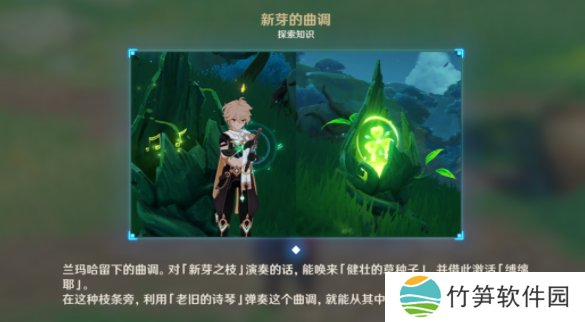 5.前往指定位置6.利用「新芽迸发的曲调」,开启通路,弹琴即可。