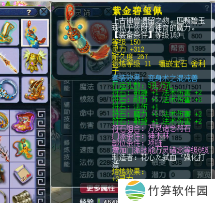 150级项链,11锻舍利子,熔炼后灵力+314。