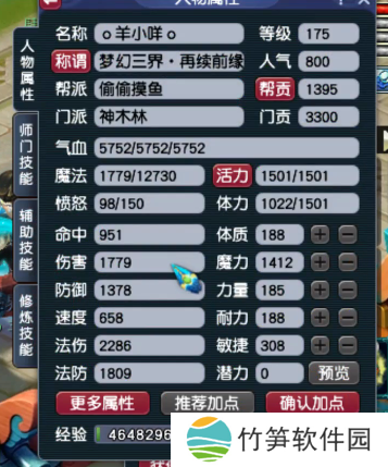 这是一个175级任务神木林,气血5752,防御1378,速度658,法防1809。