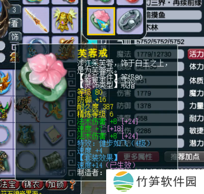 80级戒指,主属性防御,下排2法伤1速度,带4级健步如飞。