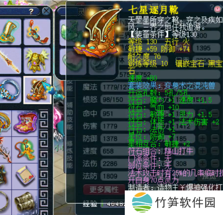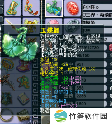 100级耳饰,主属性法防,下排2法伤1速度,带4级健步如飞。