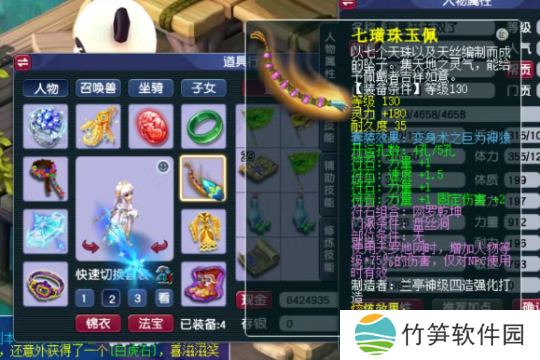 项链部分为130级总灵181的巨力神猿,开了四孔,用它刷任务没毛病。