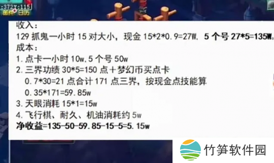 有五开玩家统计了一组129级号抓15对大小鬼的净收益,一通加减法过后就剩下5.15万。笔者觉得不对劲,如果消耗的三界算钱,为何不直接用储备模式?