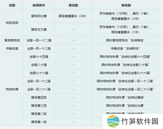 提升玩家参与晋级赛、晋级交叉赛的参赛奖励,并依据玩家晋级情况及赛事战况提供相应的特效称谓荣誉展示: