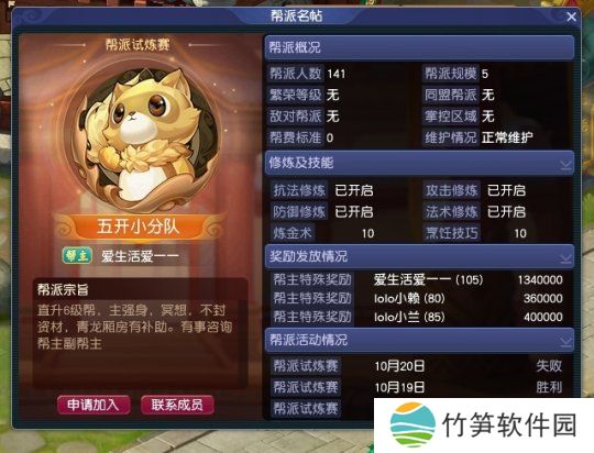 帮派编号为335号,虽然编号数字靠后,但目前也是一个拥有141位帮派成员的5级大帮啦,在新区还是十分不错的。