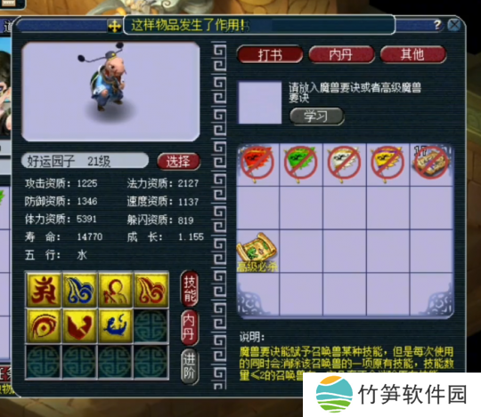 特殊技能掉了,来一手回炉,把龟丞相的必带技能水攻认证,再跟3技能诸天正法多闻巡守进行回炉。