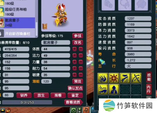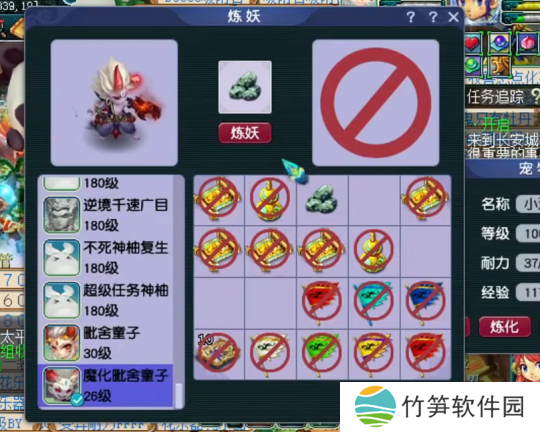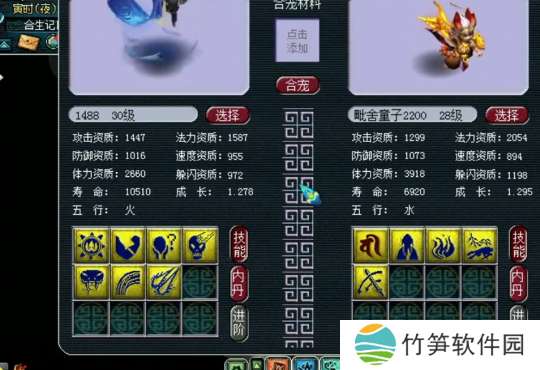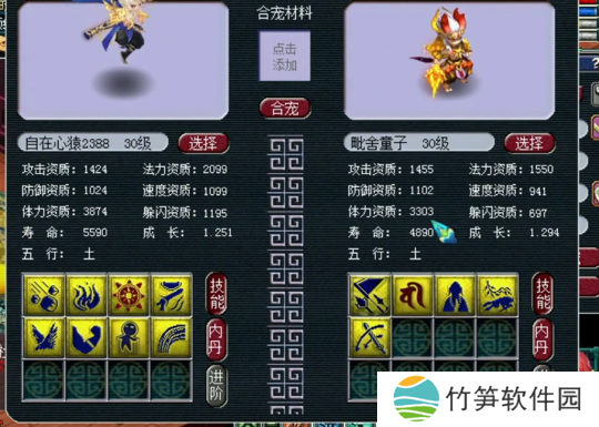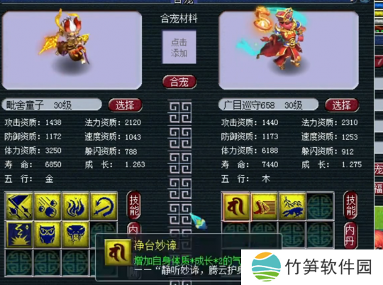 第一波炼妖宣告失败,玩家表示不服,于是再找来一组净台胚子进行炼妖,7技能猴子+5技能净台童子进行炼妖。