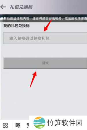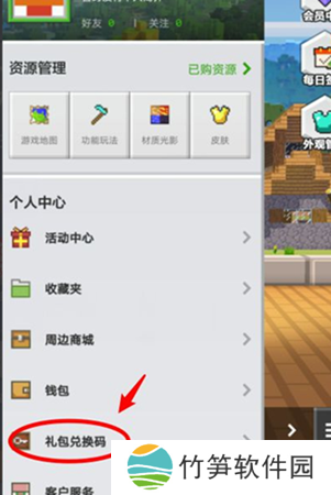 2、弹出个人中心页面,点击下方的礼包兑换码。